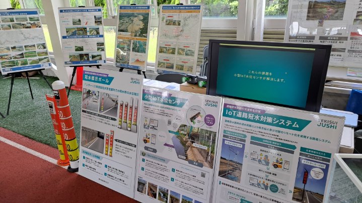 展示ブースコーナーでは防災に関わる幅広い団体が出展し、弊社としても昨年度の豪雨災害時の対応の様子や流域治水関係のセンサー・システムのご紹介などをし、多くの方にご来場いただきました。