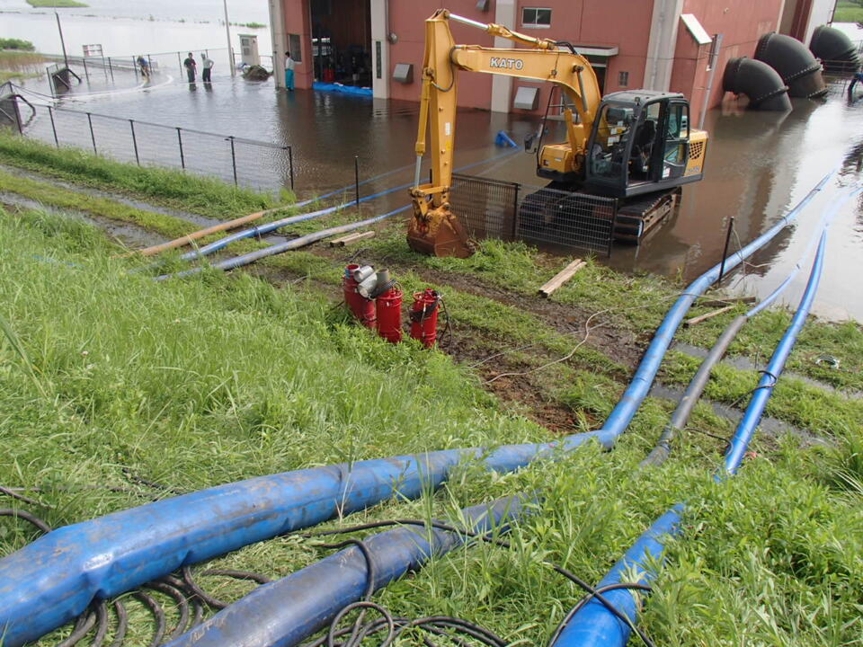 弊社では、災害時・緊急時に迅速に対応できるように日ごろから重点的なメンテナンスと技術で備えております。また、近年頻発している豪雨の際は水から地域を守る為、24時間体制で業務にあたっております。
